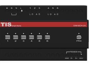 دیمر هوشمند TIS به صورت Free Voltage با شش کانال خروجی که هر کانال ۲ آمپر جهت کنترل شدت میزان نور از خود عبور می دهد. به صورت هر کانال میتواند بصورت دستی و یا از طریق نرم افزار سیستم هوشمند TIS و توسط متخصص سیستم هوشمند برنامه ریزی شوند. ازجمله امکانات این ماژول عبارتند از: امکان کنترل